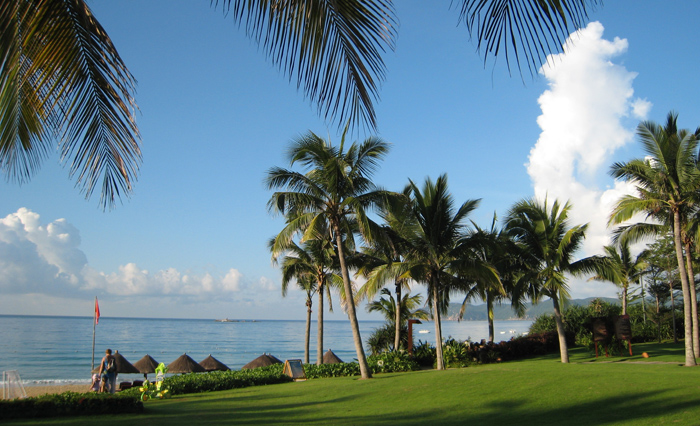 在祖国浩淼的南海上,浮着一个风光旖旎的热带岛屿,那里有辽阔广袤的天空、澄清透明的海域、平坦柔软的沙滩,树影婆娑的椰林,它就是风景秀丽的海南岛。当 今国际旅游者喜爱的阳光、海水、沙滩、绿色、空气这5个要素,海南环岛沿岸均兼而有之。宋代大文豪苏东坡当年获罪被贬到这里时,留下了“九死南荒吾不悔, 兹游奇绝冠平生”的诗句,意思是说海南风光是他平生所见的较美,即使死在这里也不后悔,对海南岛的风光予以很高的评价。